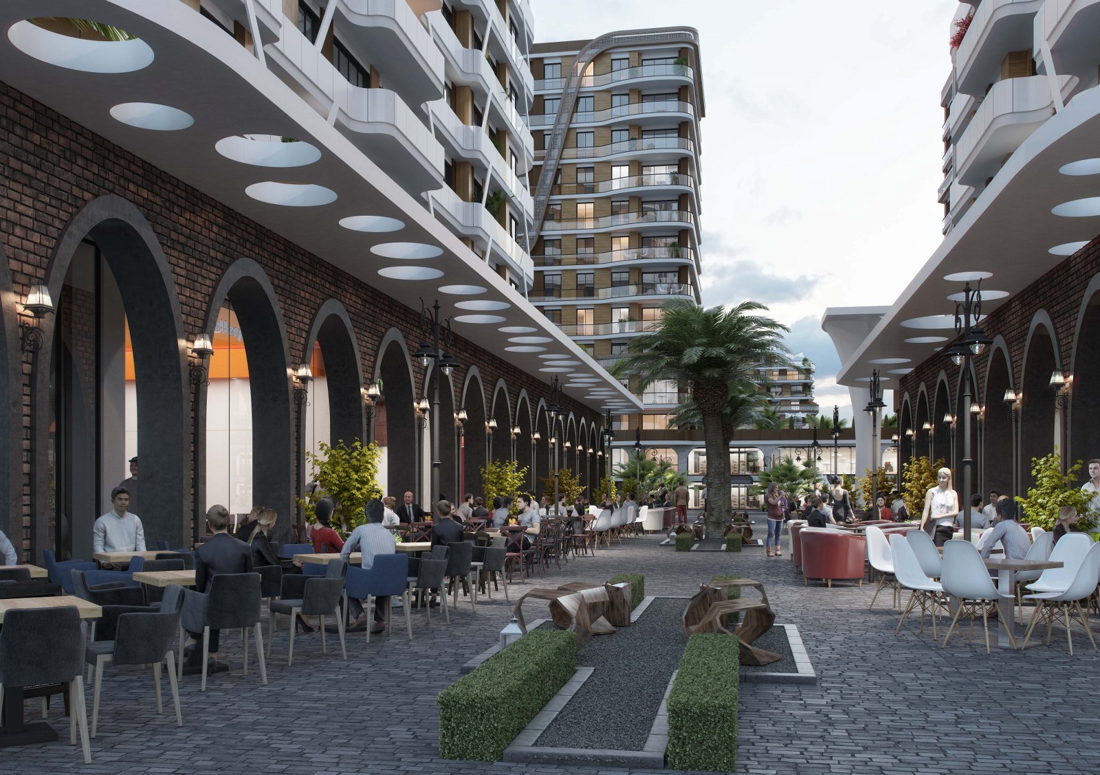 The project is oriented in such a manner where one facade is directed towards the sea while the other towards the shopping avenue located within the project. With a large area of 44,000 sqm, the architects made sure to use diverse concepts for building design, facades, materials of the building and the shopping avenue which is divided into 3. The shopping avenue hosts 112 stores meanwhile, 50% of the site is dedicated to green areas.